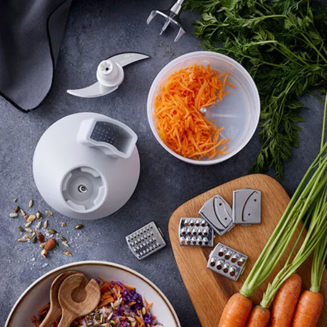 دارای 5 تیغه قابلتعویض: 3 تیغه رنده و 2 تیغه اسلایسر ,شستشو در ماشین ظرفشویی |