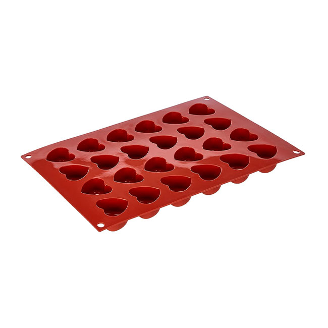 این قالب به طراحی و تولید برند معتبر سیلیکومارت ایتالیا با کیفیتی برتر و از نخبهترین تولیدکنندگان قالبهای سیلیکونی ساخته شده است. ابعاد کلی این قالب 17.5 در 30 سانتیمتر بوده و شامل 24 قالبریز قلب شکل به ابعاد هر یک 3 در 3 سانتیمتر در عمق 1.5 سانتیمتر است.